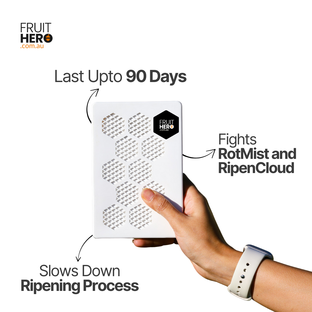 The trick to keeping fruit fresh isn’t using more bags or eating it all fast it’s stopping the gas and moisture that make it spoil. Big farms and supermarkets already use this science to keep fruit fresher for longer. Now, Fruit Hero Fridge Filter Pod brings that same smart method to your fridge.